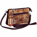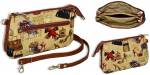 Гобеленовый клатч с тремя отделениями под общей молнией. На задней стенке кармашек на молнии. Дно из искусственной кожи.
