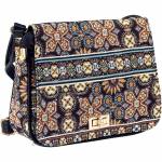 Небольшая элегантная сумка для самого необходимого. Дно — из гобелена. Снаружи на задней стенке большой карман на молнии. Сумка закрывается на клапан с поворотной застежкой, под клапаном — молния.