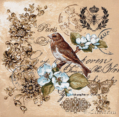 Гобелен стилизованный под почтовую марку. Центральный рисунок — цветущая ветвь с сидящей на ней птицей. Цветочная вязь слева выткана с использованием золотой нити. Отличительная особенность этой марки — венок внутри которого рисунок пчелы с короной.