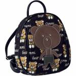 Компактный мини рюкзачок для детей и подростков. Популярен у молодежи, самое необходимое в него положить можно. Рюкзак застегивается на молнию. Ручка и ремни из искусственной кожи. На передней стенке большая аппликация из цветной искусственной кожи и клепок в форме медведя.