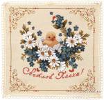 Натюрморт с букетом полевых цветов и фруктами на фоне средиземноморского пейзажа. Подойдет для кухни или гостиной. Прекрасно впишется в интерьер загородного коттеджа или летнего домика.