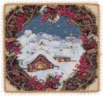 Наволочка новогодней тематики для украшения интерьера и создания праздничного настроения в доме. Фон наволочки выткан с применением золотой нити. Она особенно заметна на ночном небе, на стенах домов и в звездах, что смотрится очень эффектно.
